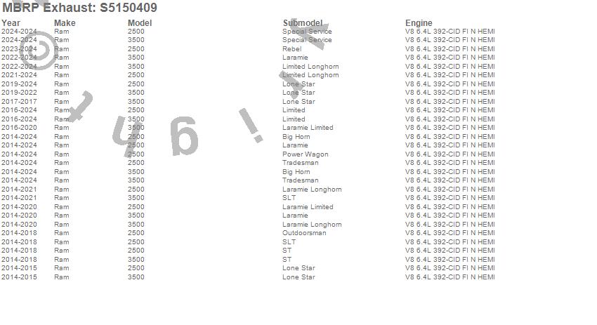 Below is an abreviated list of applications for the XP Series Cat Back Exhaust System.