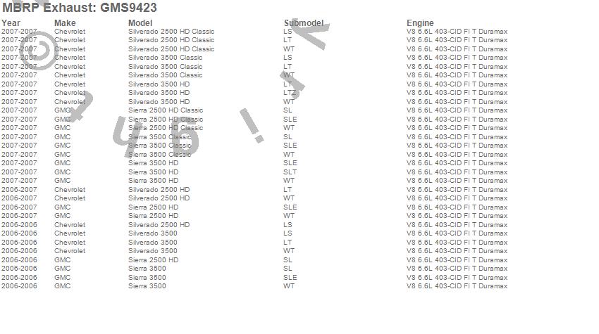 Below is an abreviated list of applications for the Exhaust Adapter.