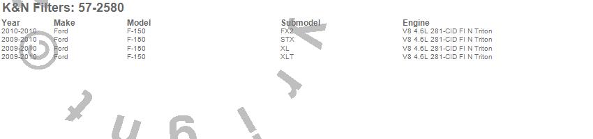 K&N Filters Filtercharger Injection Performance Kit 57-2580 Features:
