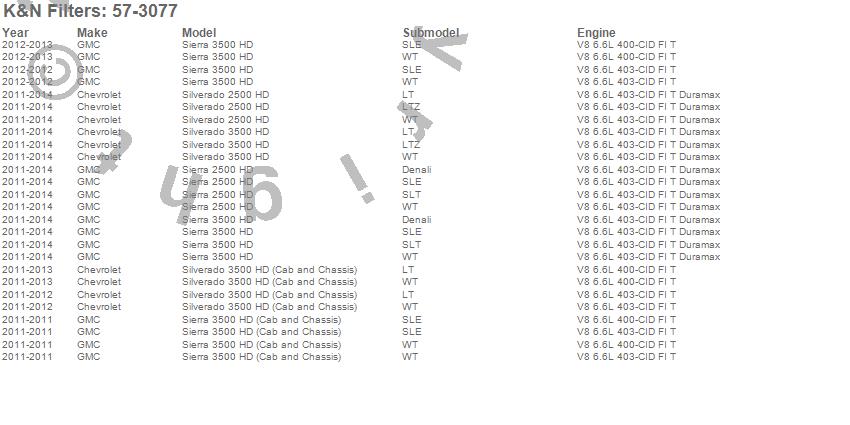 Below is an abreviated list of applications for the Filtercharger Injection Performance Kit.