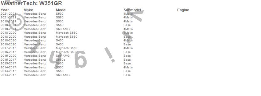 Below is an abreviated list of applications for the All Weather Floor Mats.