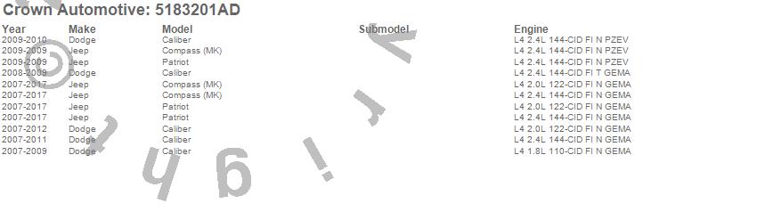 Below is an abreviated list of applications for the Fuel Pump Module.