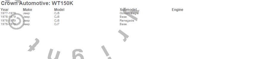 Crown Automotive is the premier manufacturer and distributor of quality replacement parts for Jeep® CJ™, Wrangler™, Cherokee™, Grand Cherokee™, Liberty™, and Commander™."From humble beginnings in 1963 in a small Boston storefront, Crown Automotive has consistently maintained its commitment to offering only quality parts and exceptional service. Today, with warehouses in Massachusetts, Georgia, Nevada, Spain, and the Czech Republic, totaling over 160,000 square feet, Crown Automotive continues to be the leader in quality replacement parts for Jeep® vehicles. With over 8,000 different parts in stock for Jeep® vehicles from 1942 on up, Crown has the largest stock of replacement parts for Jeep® vehicles, including factory-discontinued parts. In fact, many of the older Jeeps are still on (and off) the road thanks to Crown parts. The Crown line consists of axle, body, brake, clutch, cooling, driveline, electrical, engine, exhaust, fuel, steering, suspension, transmission and transfer case components. Crown Automotive also offers an exclusive line of component kits and accessory products. Because we know that Jeeps are driven harder than most other vehicles, we emphasize offering only quality parts. In fact, we test parts on Jeeps before distributing them to our dealers to insure that they meet our standards for quality. Crown also supports its entire line with a 12 month/12,000 mile warranty to insure our dealers and their customers of our commitment to offering quality parts. We know from experience that Jeep® owners would rather pay a little more for a good quality part that's backed by a strong guarantee. But we know that price is important as well. So, not only will you find Crown parts to be of exceptional quality, but you'll find them at a great price too.