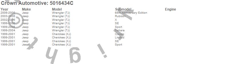 Crown Automotive is the premier manufacturer and distributor of quality replacement parts for Jeep® CJ™, Wrangler™, Cherokee™, Grand Cherokee™, Liberty™, and Commander™."From humble beginnings in 1963 in a small Boston storefront, Crown Automotive has consistently maintained its commitment to offering only quality parts and exceptional service. Today, with warehouses in Massachusetts, Georgia, Nevada, Spain, and the Czech Republic, totaling over 160,000 square feet, Crown Automotive continues to be the leader in quality replacement parts for Jeep® vehicles. With over 8,000 different parts in stock for Jeep® vehicles from 1942 on up, Crown has the largest stock of replacement parts for Jeep® vehicles, including factory-discontinued parts. In fact, many of the older Jeeps are still on (and off) the road thanks to Crown parts. The Crown line consists of axle, body, brake, clutch, cooling, driveline, electrical, engine, exhaust, fuel, steering, suspension, transmission and transfer case components. Crown Automotive also offers an exclusive line of component kits and accessory products. Because we know that Jeeps are driven harder than most other vehicles, we emphasize offering only quality parts. In fact, we test parts on Jeeps before distributing them to our dealers to insure that they meet our standards for quality. Crown also supports its entire line with a 12 month/12,000 mile warranty to insure our dealers and their customers of our commitment to offering quality parts. We know from experience that Jeep® owners would rather pay a little more for a good quality part that's backed by a strong guarantee. But we know that price is important as well. So, not only will you find Crown parts to be of exceptional quality, but you'll find them at a great price too.