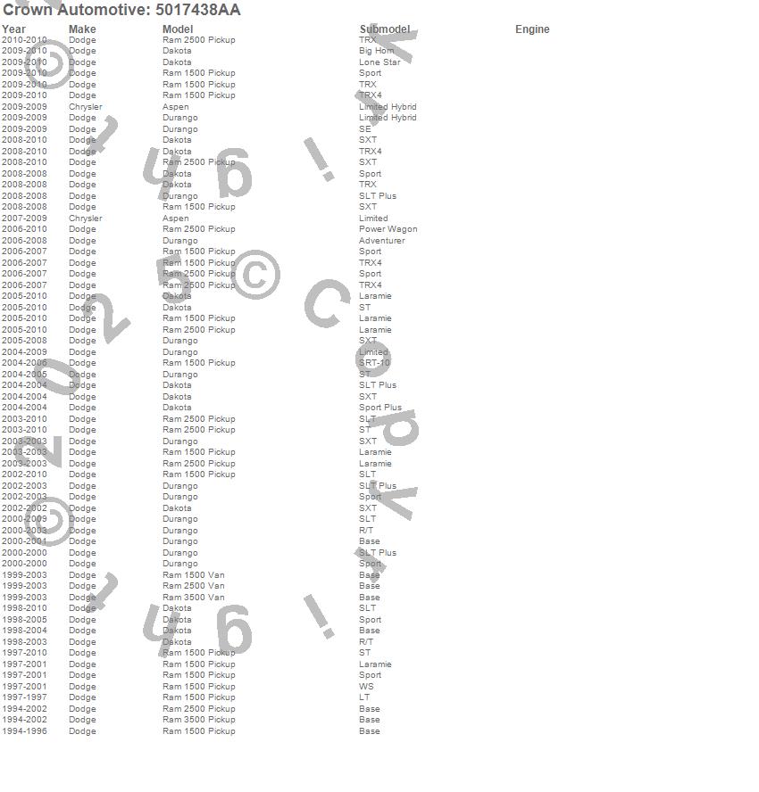 Aspen, Dakota, Durango, Ram 1500, Ram 1500 Van, Ram 2500, Ram 2500 Van, Ram 3500, Ram 3500 Van, Chrysler, Dodge, 2010, 2009, 2008, 2007, 2006, 2005, 2004, 2003, 2002 more…