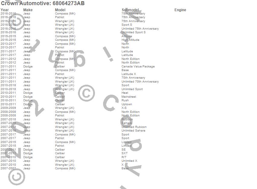 Caliber, Compass, Patriot, Wrangler (JK), Dodge, Jeep, 2015, 2014, 2013, 2012, 2011, 2010, 2009, 2008, 2007 more…