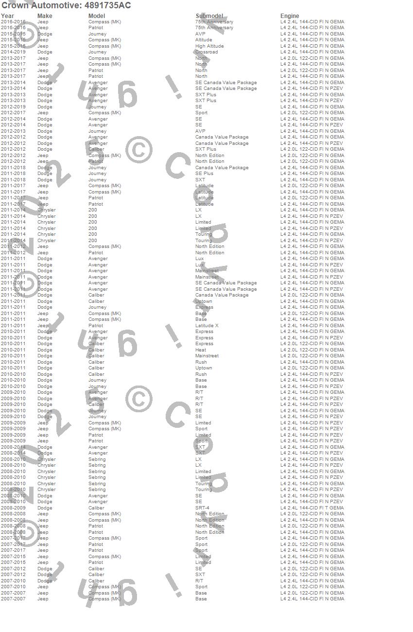 200, Avenger, Caliber, Compass, Journey, Patriot, Sebring, Chrysler, Dodge, Jeep, 2016, 2015, 2014, 2013, 2012, 2011, 2010, 2009, 2008, 2007 more…