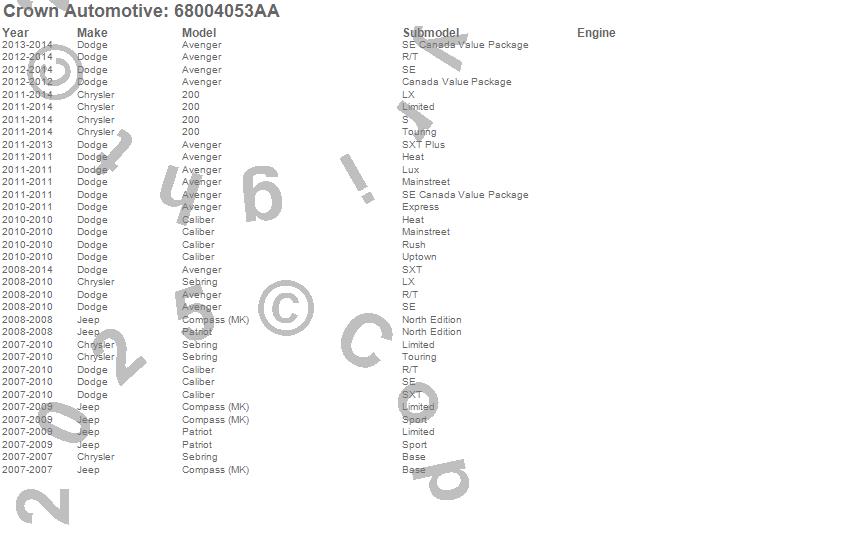 200, Avenger, Caliber, Compass, Patriot, Sebring, Chrysler, Dodge, Jeep, 2014, 2013, 2012, 2011, 2010, 2009, 2008, 2007 more…