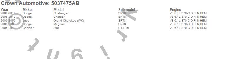 300, Challenger, Charger, Grand Cherokee (WK), Magnum, Chrysler, Dodge, Jeep, 2010, 2009, 2008, 2007, 2006, 2005 more…