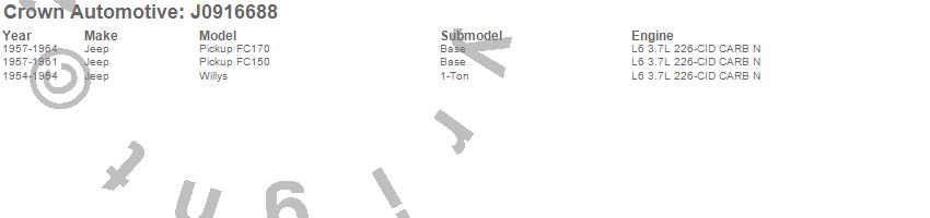 Crown Automotive is the premier manufacturer and distributor of quality replacement parts for Jeep® CJ™, Wrangler™, Cherokee™, Grand Cherokee™, Liberty™, and Commander™."From humble beginnings in 1963 in a small Boston storefront, Crown Automotive has consistently maintained its commitment to offering only quality parts and exceptional service. Today, with warehouses in Massachusetts, Georgia, Nevada, Spain, and the Czech Republic, totaling over 160,000 square feet, Crown Automotive continues to be the leader in quality replacement parts for Jeep® vehicles. With over 8,000 different parts in stock for Jeep® vehicles from 1942 on up, Crown has the largest stock of replacement parts for Jeep® vehicles, including factory-discontinued parts. In fact, many of the older Jeeps are still on (and off) the road thanks to Crown parts. The Crown line consists of axle, body, brake, clutch, cooling, driveline, electrical, engine, exhaust, fuel, steering, suspension, transmission and transfer case components. Crown Automotive also offers an exclusive line of component kits and accessory products. Because we know that Jeeps are driven harder than most other vehicles, we emphasize offering only quality parts. In fact, we test parts on Jeeps before distributing them to our dealers to insure that they meet our standards for quality. Crown also supports its entire line with a 12 month/12,000 mile warranty to insure our dealers and their customers of our commitment to offering quality parts. We know from experience that Jeep® owners would rather pay a little more for a good quality part that's backed by a strong guarantee. But we know that price is important as well. So, not only will you find Crown parts to be of exceptional quality, but you'll find them at a great price too.