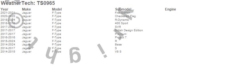 Below is an abreviated list of applications for the WeatherTech TechShade.