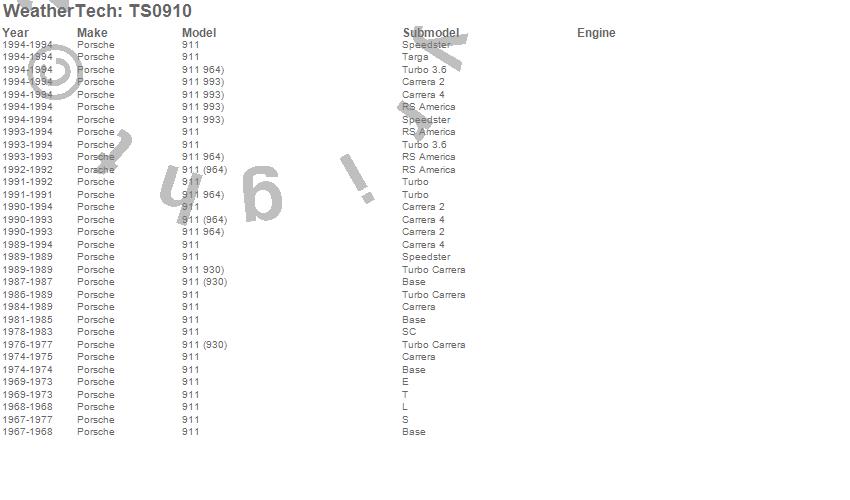 Below is an abreviated list of applications for the WeatherTech TechShade.