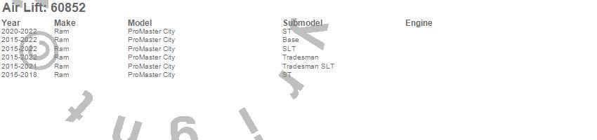 Below is an abreviated list of applications for the Air Lift 1000 Coil Spring.