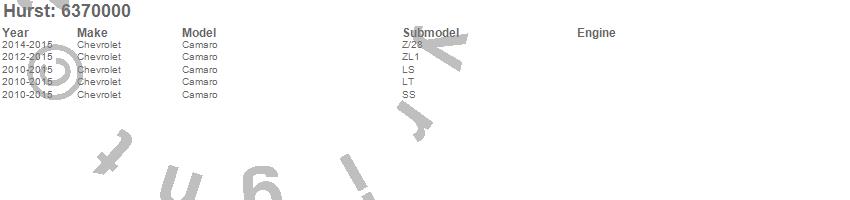 Hurst Floor Mat Kit 6370000 Features: