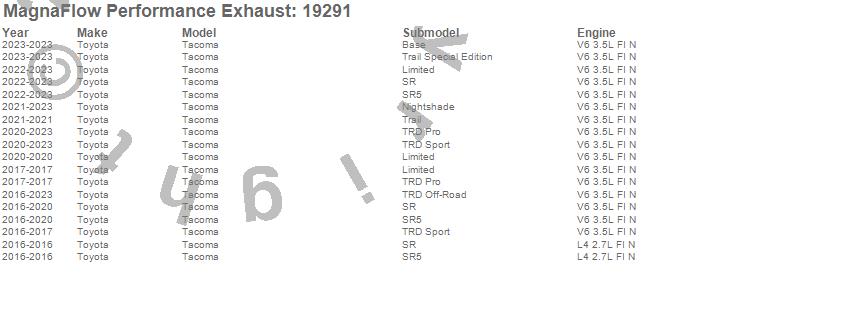 Below is an abreviated list of applications for the MF Series Performance Cat-Back Exhaust System.