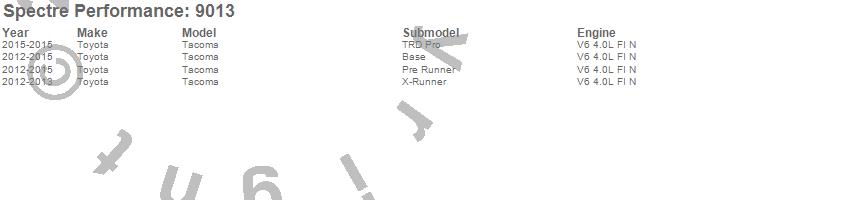 Below is an abreviated list of applications for the Air Intake Kit.