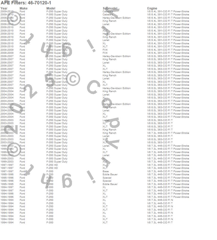 Below is an abreviated list of applications for the Transmission Pan.