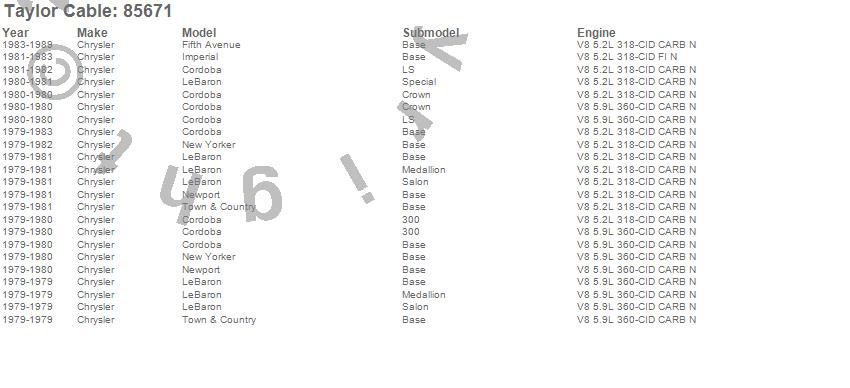 Cordoba, Fifth Avenue, Imperial, LeBaron, New Yorker, Newport, Town & Country, Chrysler, 1989, 1988, 1987, 1986, 1985, 1984, 1983, 1982, 1981, 1980, 1979 more…