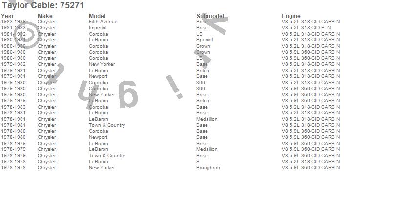 Cordoba, Fifth Avenue, Imperial, LeBaron, New Yorker, Newport, Town & Country, Chrysler, 1989, 1988, 1987, 1986, 1985, 1984, 1983, 1982, 1981, 1980, 1979, 1978 more…