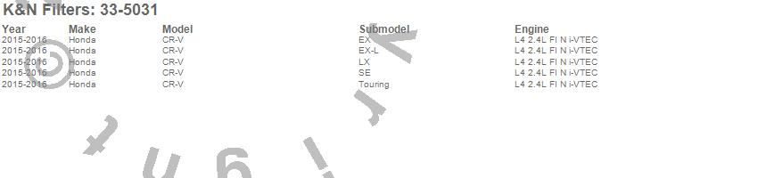 Below is an abreviated list of applications for the Air Filter.