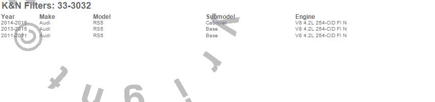 Below is an abreviated list of applications for the Air Filter.
