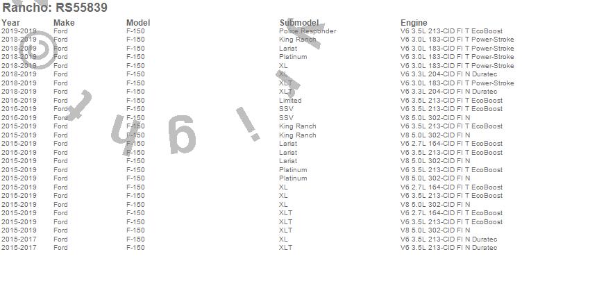 Below is an abreviated list of applications for the RS5000X Series Suspension Strut Assembly.