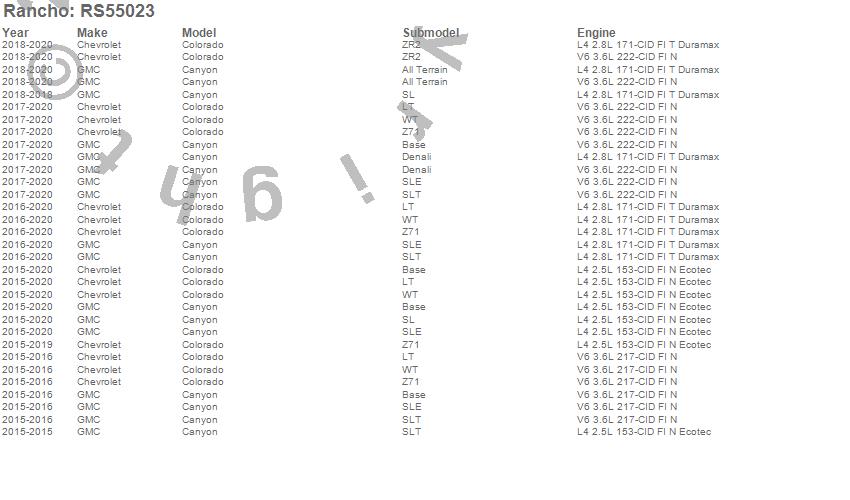 Below is an abreviated list of applications for the RS5000X Series Shock Absorber.