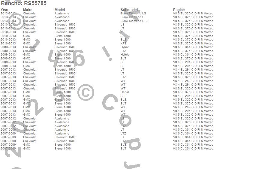 Below is an abreviated list of applications for the RS5000X Series Suspension Strut Assembly.