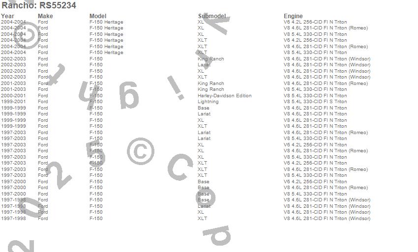 Below is an abreviated list of applications for the RS5000X Series Shock Absorber.
