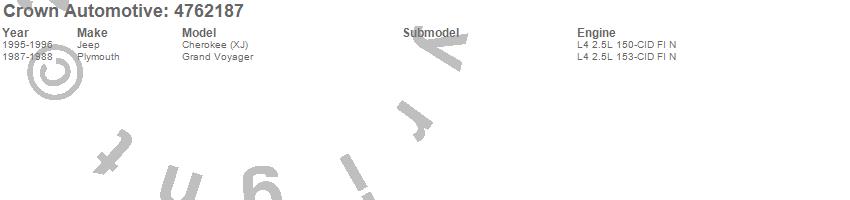 Cherokee (XJ), Grand Voyager, Jeep, Plymouth, 1996, 1995, 1989, 1988, 1987 more…