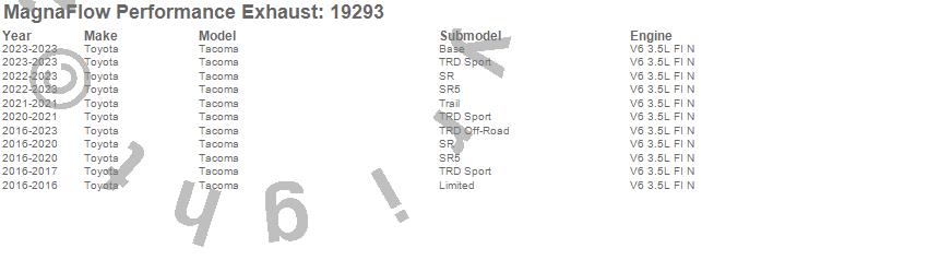 Below is an abreviated list of applications for the MF Series Performance Cat-Back Exhaust System.