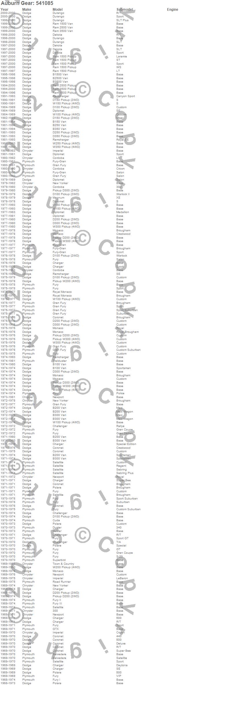 300, B100 Van, B150 Van, B1500 Van, B200 Van, B250 Van, B2500 Van, B300 Van, B350 Van, B3500 Van, Belvedere, Challenger, Charger, Cordoba, Coronet, Cuda, D100 Pickup, D150 Pickup, D200 Pickup, D250 Pickup more…