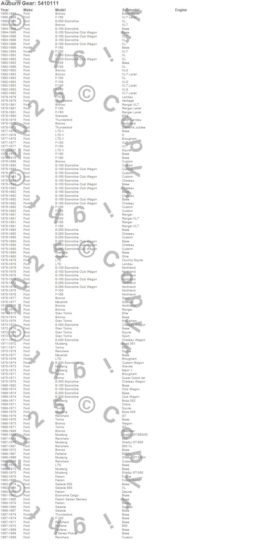 Bronco, E-100 Econoline, E-100 Econoline Club Wagon, E-150 Econoline, E-150 Econoline Club Wagon, E-200 Econoline, E-250 Econoline, E-250 Econoline Club Wagon, E-300 Econoline, Econoline Cargo, F Series, F-100, F-150, Fairlane, Falcon, Falcon Sedan Delivery, Galaxie, Galaxie 500, Gran Torino, Granada more…