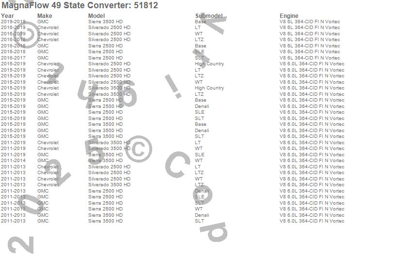 Below is an abreviated list of applications for the Direct Fit Catalytic Converter.