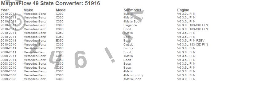 Below is an abreviated list of applications for the Direct Fit Catalytic Converter.