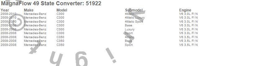Below is an abreviated list of applications for the Direct Fit Catalytic Converter.