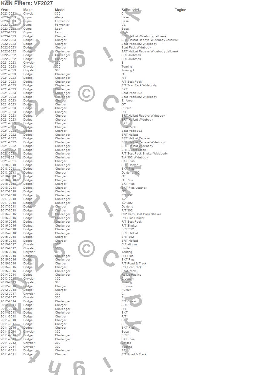 Below is an abreviated list of applications for the Cabin Air Filter.