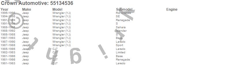 Crown Automotive is the premier manufacturer and distributor of quality replacement parts for Jeep® CJ™, Wrangler™, Cherokee™, Grand Cherokee™, Liberty™, and Commander™."From humble beginnings in 1963 in a small Boston storefront, Crown Automotive has consistently maintained its commitment to offering only quality parts and exceptional service. Today, with warehouses in Massachusetts, Georgia, Nevada, Spain, and the Czech Republic, totaling over 160,000 square feet, Crown Automotive continues to be the leader in quality replacement parts for Jeep® vehicles. With over 8,000 different parts in stock for Jeep® vehicles from 1942 on up, Crown has the largest stock of replacement parts for Jeep® vehicles, including factory-discontinued parts. In fact, many of the older Jeeps are still on (and off) the road thanks to Crown parts. The Crown line consists of axle, body, brake, clutch, cooling, driveline, electrical, engine, exhaust, fuel, steering, suspension, transmission and transfer case components. Crown Automotive also offers an exclusive line of component kits and accessory products. Because we know that Jeeps are driven harder than most other vehicles, we emphasize offering only quality parts. In fact, we test parts on Jeeps before distributing them to our dealers to insure that they meet our standards for quality. Crown also supports its entire line with a 12 month/12,000 mile warranty to insure our dealers and their customers of our commitment to offering quality parts. We know from experience that Jeep® owners would rather pay a little more for a good quality part that's backed by a strong guarantee. But we know that price is important as well. So, not only will you find Crown parts to be of exceptional quality, but you'll find them at a great price too.
