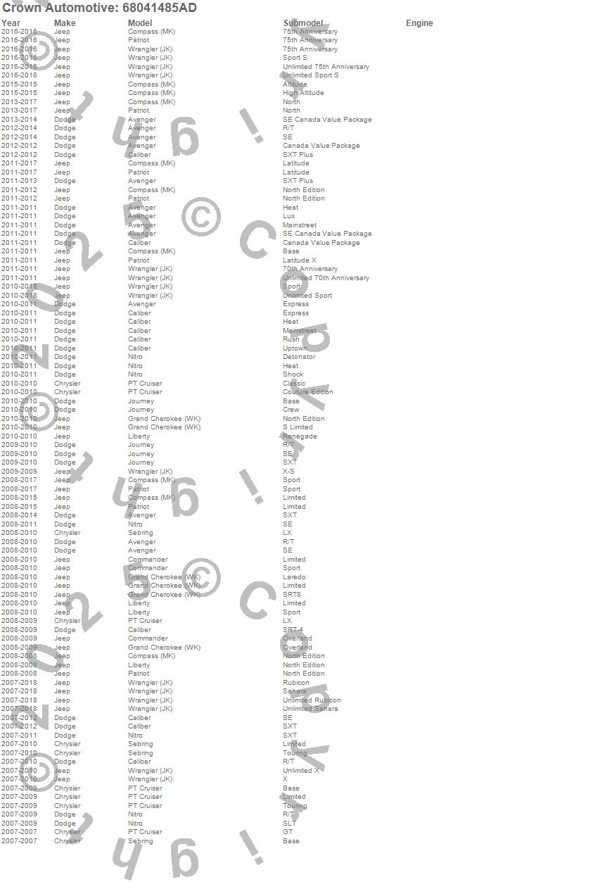 Avenger, Caliber, Commander, Compass, Grand Cherokee (WK), Journey, Liberty, Nitro, Patriot, PT Cruiser, Sebring, Wrangler (JK), Chrysler, Dodge, Jeep, 2016, 2015, 2014, 2013, 2012 more…