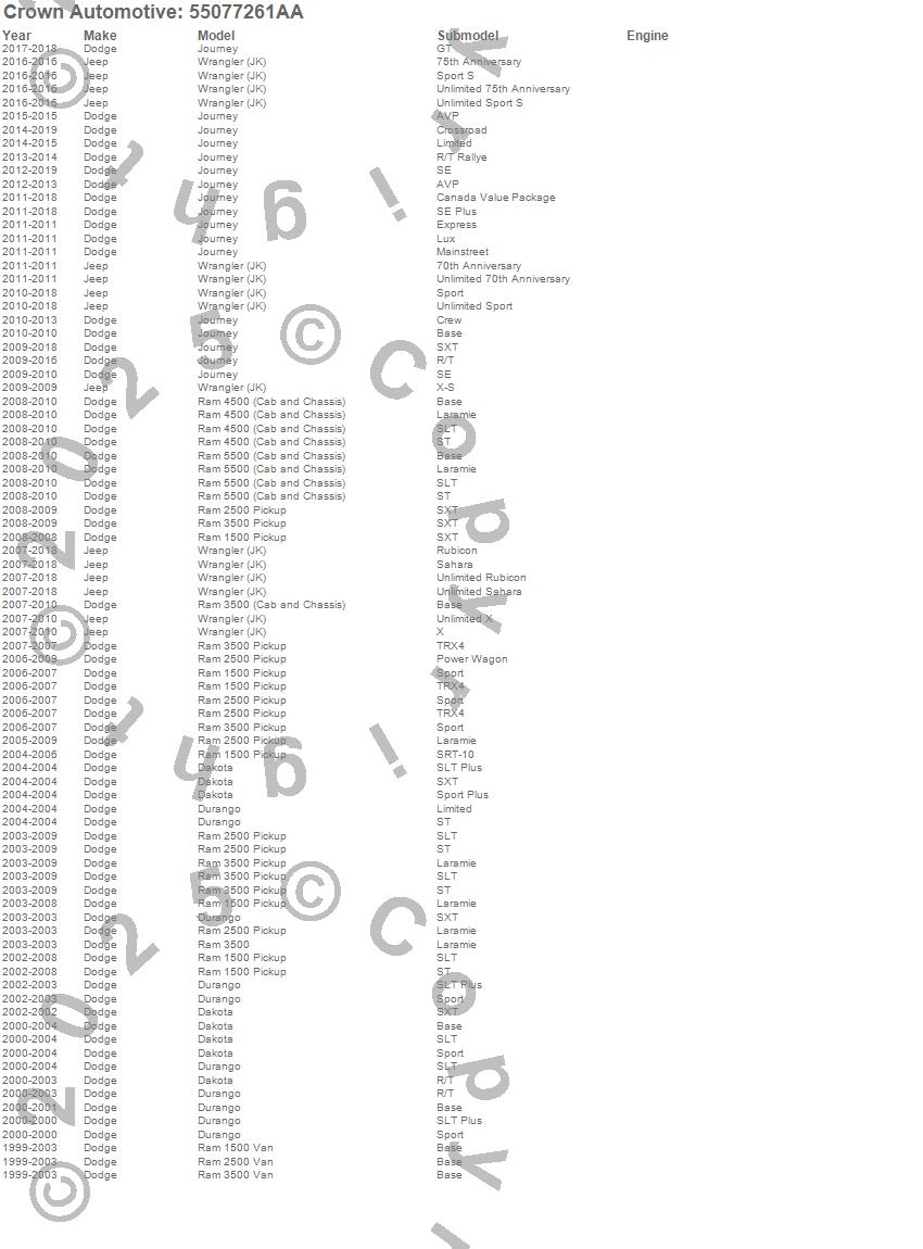 Dakota, Durango, Journey, Ram 1500, Ram 1500 Van, Ram 2500, Ram 2500 Van, Ram 3500, Ram 3500 Van, Ram 4500, Ram 5500, Wrangler (JK), Dodge, Jeep, 2016, 2015, 2014, 2013, 2012, 2011 more…