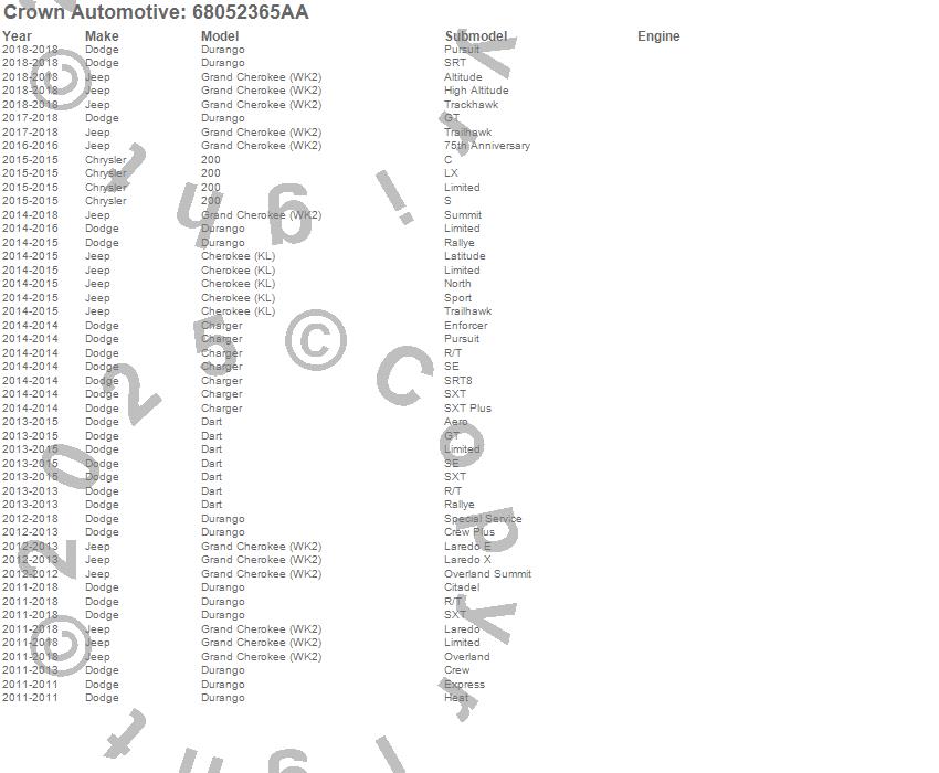 200, Charger, Cherokee (KL), Dart, Durango, Grand Cherokee (WK2), Chrysler, Dodge, Jeep, 2015, 2014, 2013, 2012, 2011 more…