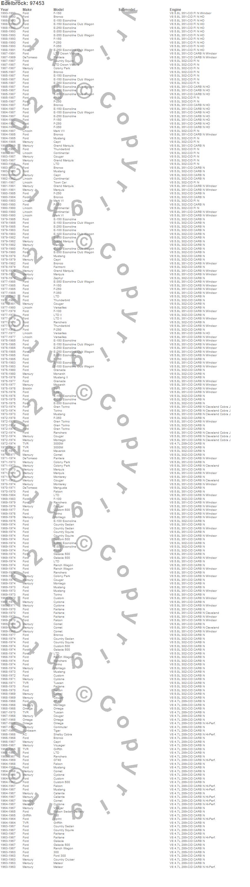 Bronco, Capri, Colony Park, Comet, Continental, Cougar, Country Sedan, Country Squire, Custom, Custom 500, Cyclone, E-100 Econoline, E-100 Econoline Club Wagon, E-150 Econoline, E-150 Econoline Club Wagon, E-200 Econoline, E-250 Econoline, E-250 Econoline Club Wagon, E-300 Econoline, E-350 Econoline more…