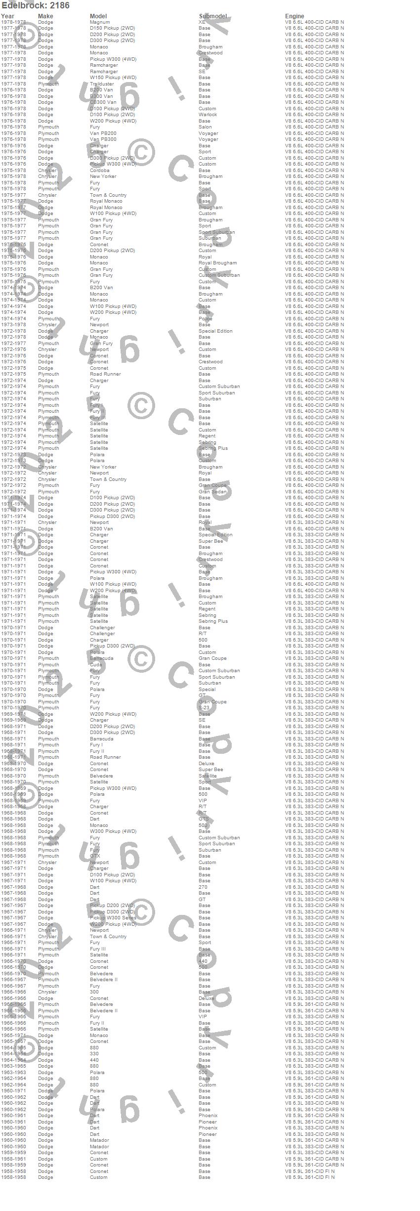 Below is an abreviated list of applications for the Performer 383 Intake Manifold.