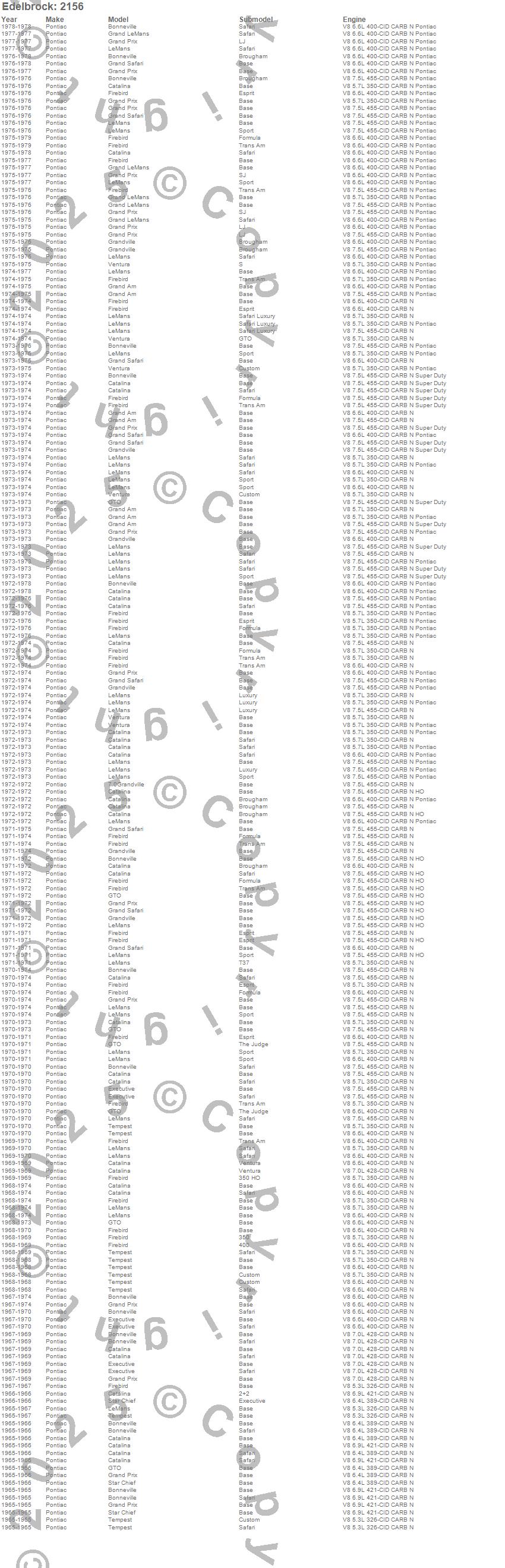 Below is an abreviated list of applications for the Performer Pontiac Intake Manifold.
