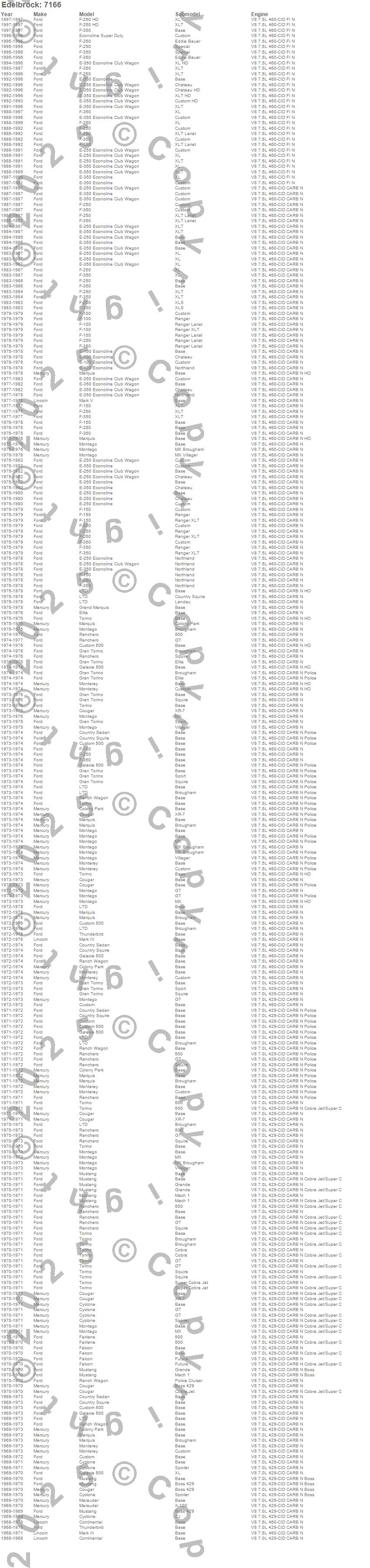 Below is an abreviated list of applications for the Performer RPM 460 Intake Manifold.