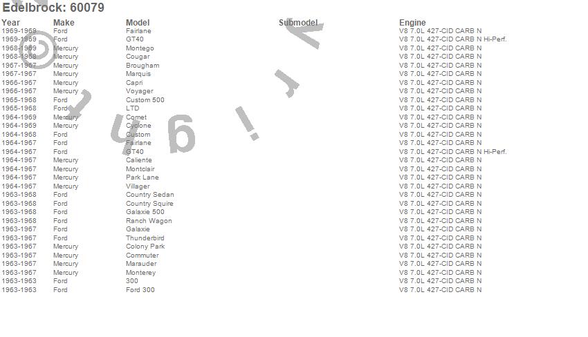 Below is an abreviated list of applications for the Performer RPM FE Cylinder Head.