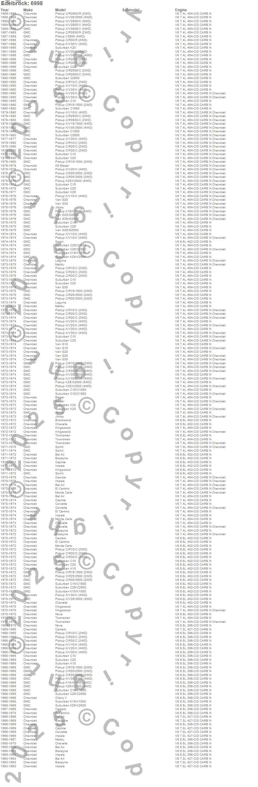 Bel Air, Biscayne, Blazer, Blazer K5, Brookwood, C10 Pickup, C10 Suburban, C15 Suburban, C15/C1500, C15/C1500 Suburban, C1500, C1500 Suburban, C20 Pickup, C20 Suburban, C25 Suburban, C25/C2500 Pickup, C25/C2500 Suburban, C2500 Pickup, C2500 Suburban, C30 Pickup more…