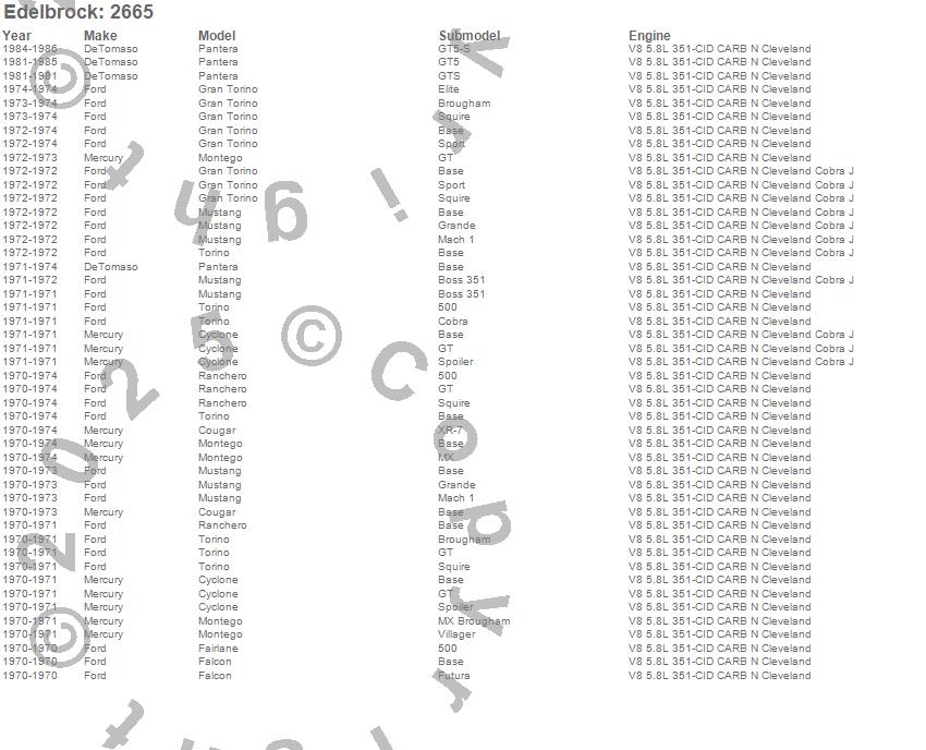 Below is an abreviated list of applications for the Performer 351-4V Intake Manifold.