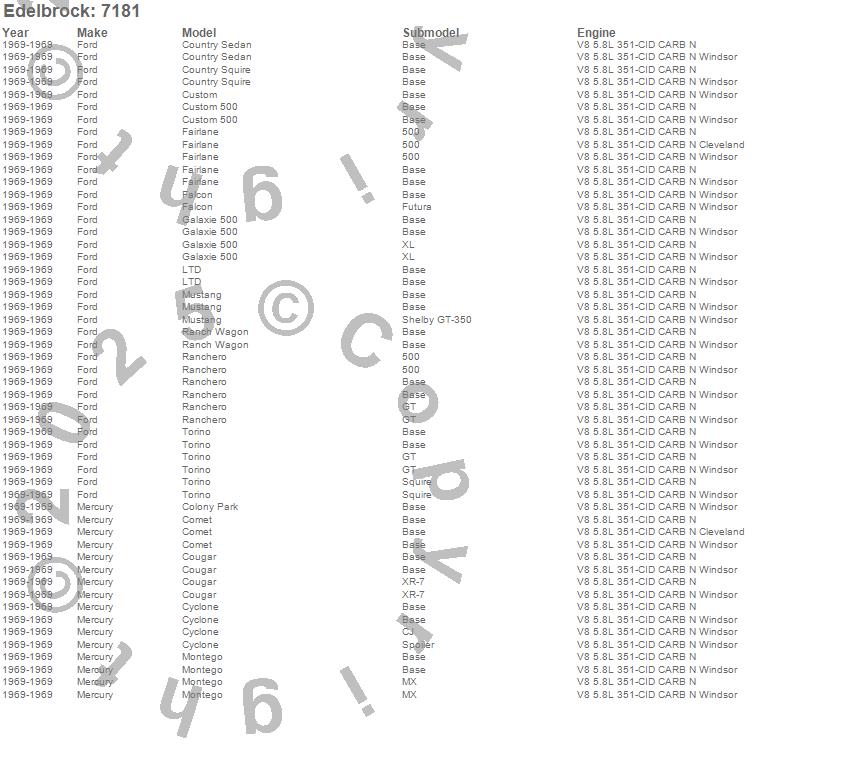 Below is an abreviated list of applications for the Performer RPM 351-W Intake Manifold.