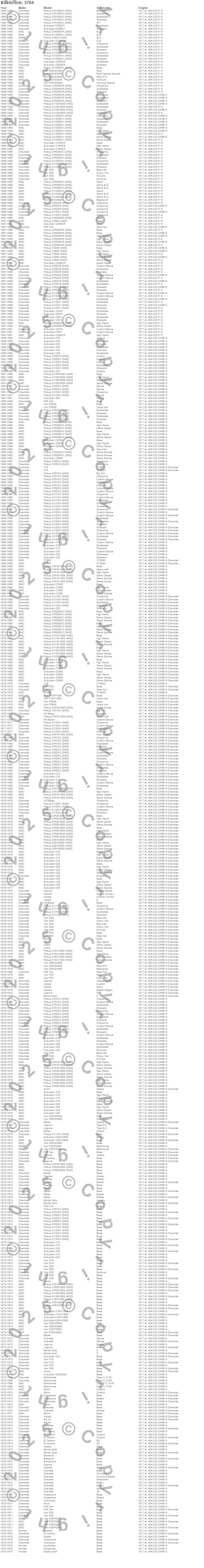 C1500 Pickup, C3500 Pickup, G30 Van, G35/G3500 Van, K3500 Pickup, R20 Pickup, R20 Suburban, R2500 Pickup, R2500 Suburban, R30 Pickup, R3500 Pickup, V20 Suburban, V2500 Suburban, V30 Pickup, V3500 Pickup, Chevrolet, GMC, 1990, 1989, 1988 more...